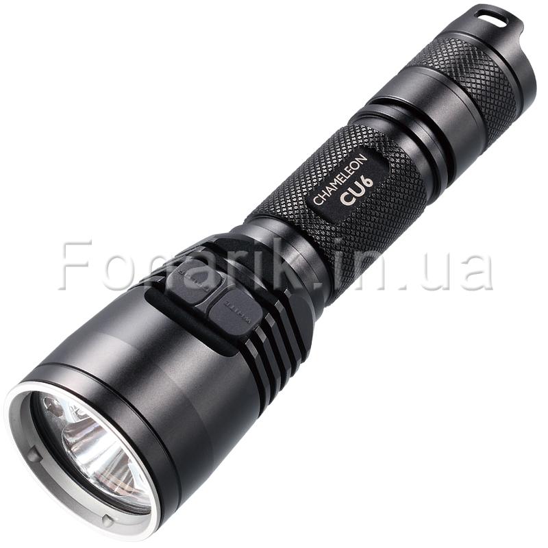 Nitecore CU6 - фонарь серии Chameleon. Уникальная незаметность фонарей получена благодаря объединению  двух светодиодов: белого (Cree XP-G2 LED), и одного светодиода (Ultraviolet LED), установленных совместно в производительном отражателе. Благодаря встроеному светодиоду Ultraviolet LED, фонарь идеально подойдет как ультрафиолетовый детектор для обнаружения специальных невидимых маркеров, следов крови, жира, щерсти и т.д. Кроме того, благодаря встроенным дополнительным цветам свечения и яркому основному цвету, данная модель будет надежным помощником для рыбаков, охотников.