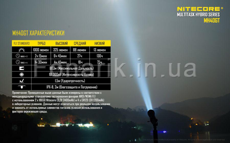 Инновационный светодиод Cree XP-L HI V3 с максимальной мощность светового потока до 1000 люмен. Интенсивность светового потока составляет 161300cd. PDOT (Precision Digital Optic Technology) - специальная инновационная технология по которой построен рефлектор и которая позволяет фонарю светить на расстояние до 803 метров! Возможность использования перезаряжаемых аккумуляторов 18650 3.7 и батарей CR123 3.7 / 3V. Интеллектуальная плата зарядки, позволяет заряжать аккумуляторы с помощью 12V адаптера или автомобильного адаптера. 130 часов непрерывного время работы в минимальном режиме 13 люмен, что позволит с легкостью освещать палатку в долгом путишевствие. Быстрый доступ к режимам яркости и 2 специальным режимам: STROBE, SOS.