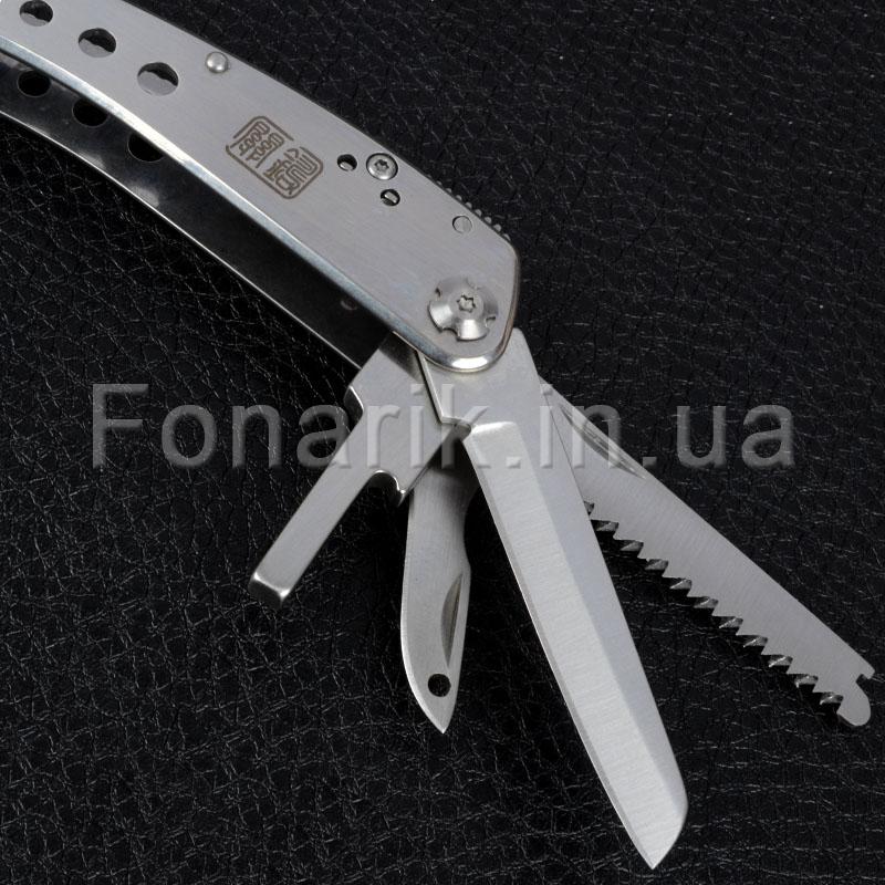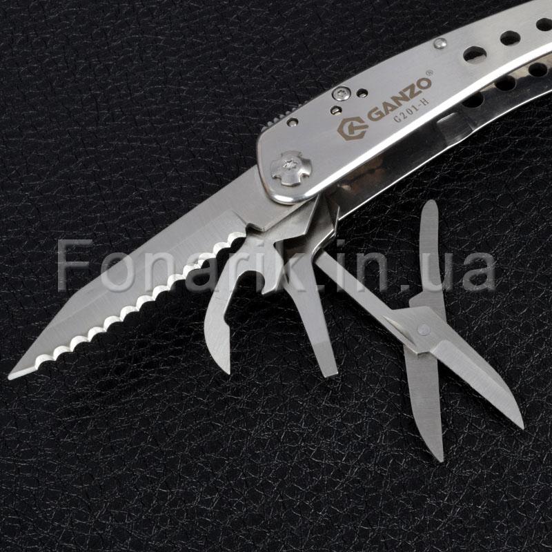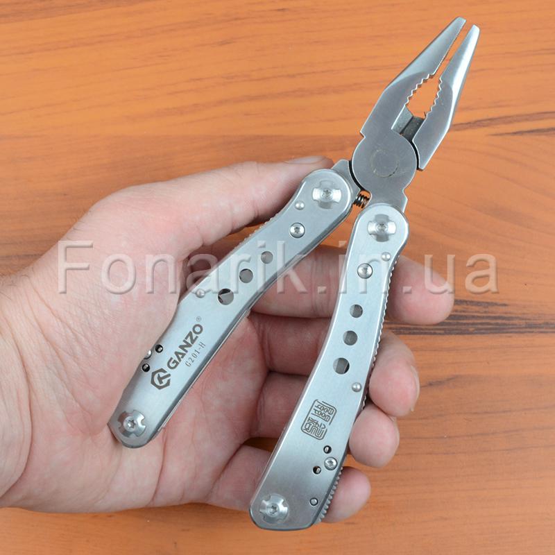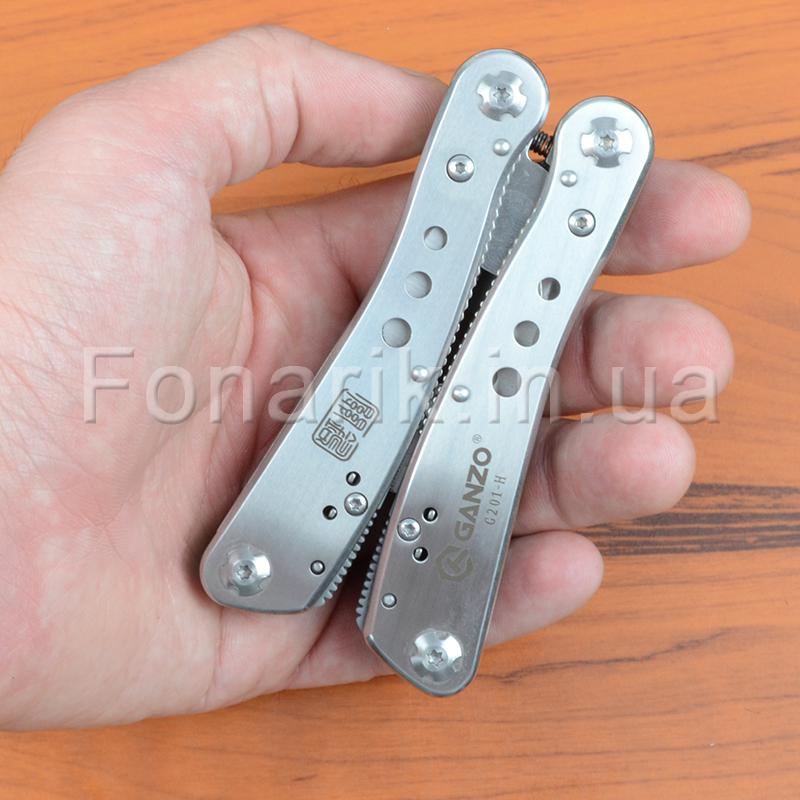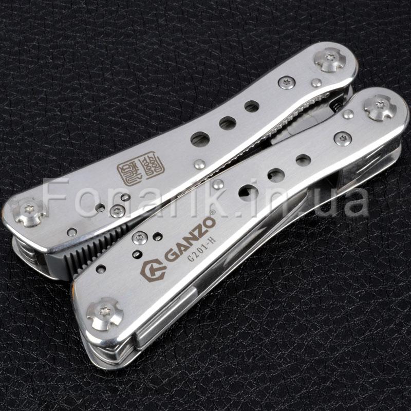 Мультитул Ganzo G201-H - это надежный инструмент с хорошим набором инструментов и качественной сборкой, который станет надежной опорой в различных ситуациях, будь это поход, охота или работы по дому. Хромированноя поверхность. G201-H изготовлен из высококачественной стали 440С закаленная до 60 единиц по шкале Роквелла, а также обладает отличной износостойкостью и устойчива к коррозии.