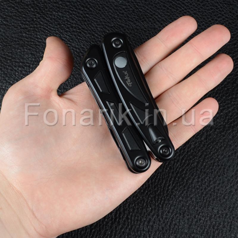 Небольшой мультитул TEKUT KT5001, в котором присутствует 11 инструментов + 2 фонарика с яркостью до 20 люменов. Инструменты выполнены из стали 5Cr15MoV. Материал рукояти пластик + нержавеющая сталь. Данный мультитул станет замечательным подарком для ежедневного ношения, как для мужчины, так и для женщины. В комплекте с мультитулом поставляется нейлон чехол, карабин и подарочная упаковка.
