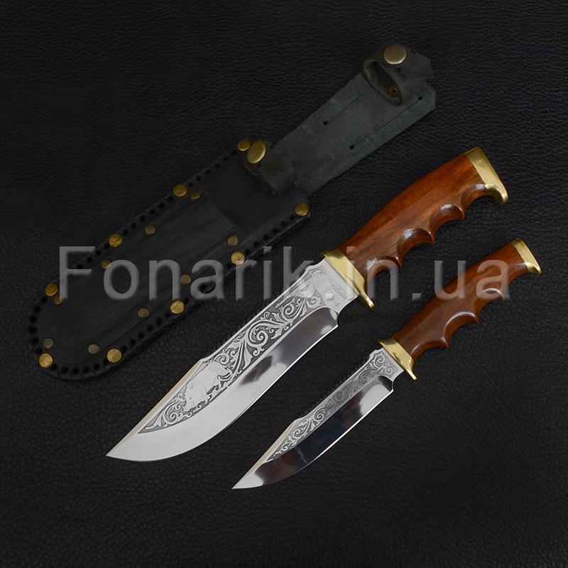Набор ножей Спутник "Туризм-2" (длина: 31cm, 23cm, лезвие: 18.2cm, 12cm), в кожаных ножнах
