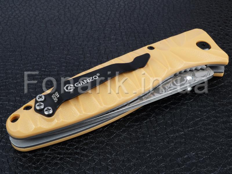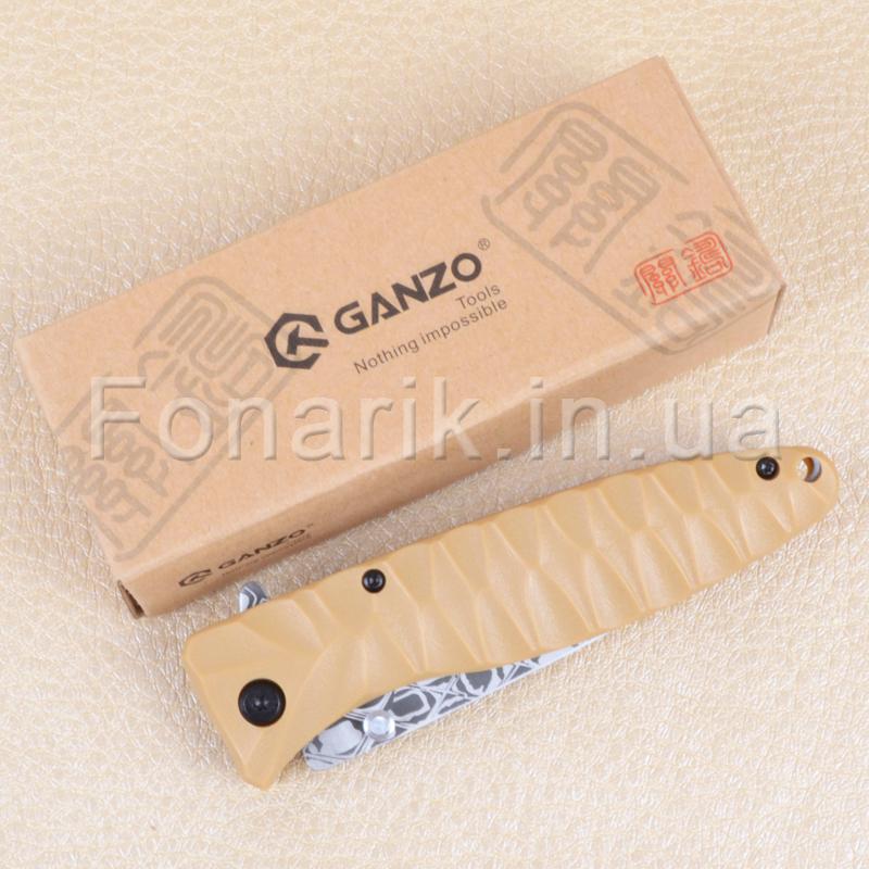 Нож складной Ganzo G620-Y2 (длина: 20.5cm, лезвие: 8.8cm) с травлением, песочный