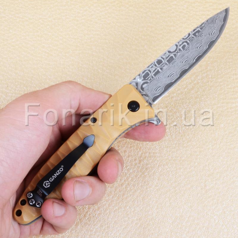 Нож складной Ganzo G620-Y2 (длина: 20.5cm, лезвие: 8.8cm) с травлением, песочный Нож складной Ganzo G620-Y2 (длина: 20.5cm, лезвие: 8.8cm) с травлением, песочный Нож складной Ganzo G620-Y2 (длина: 20.5cm, лезвие: 8.8cm) с травлением, песочный