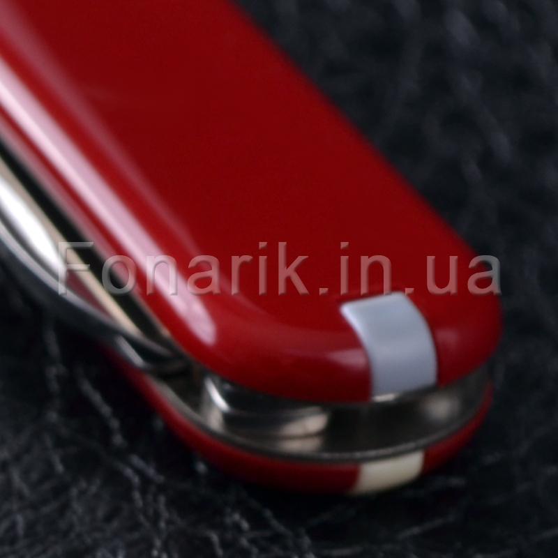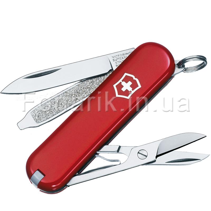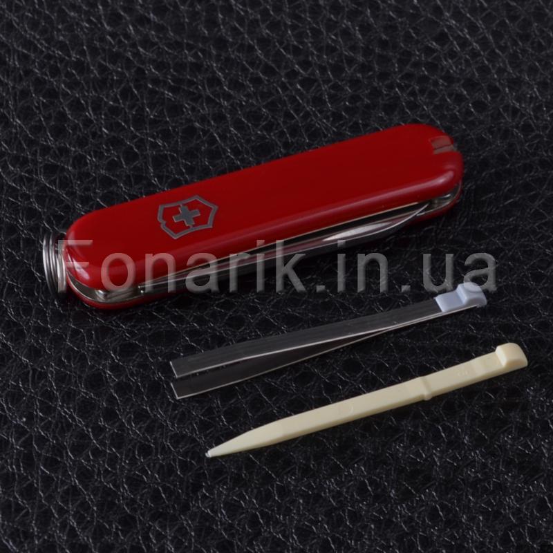 Нож Victorinox Classic SD один из самых компактных ножей его длина всего 58см, а вес 21г. При этом нож обладает хорошим функционалом: нож, пилочку с плоской отверткой, ножницы, пинцет и зубочистку, которые спрятаны в корпусе. Будет полезен в быту и на природе.