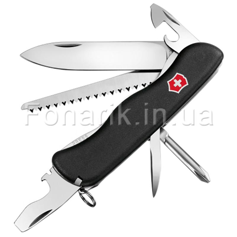 Швейцарский нож Victorinox TRAILMASTER - один из представителей серии ножей от Victorinox созданных для спецслужб с большим фиксирующим лезвием и отверткой. Все встроенные инструменты и детали ножа выполнены из высокопрочной нержавеющей сталь. Такой нож станет настоящей находкой для охотников, рыбаков и туристов.