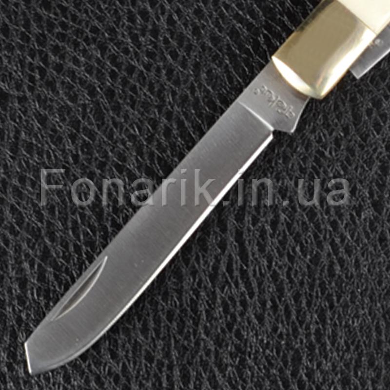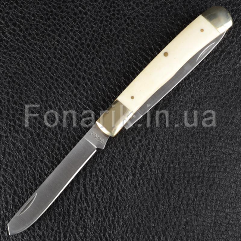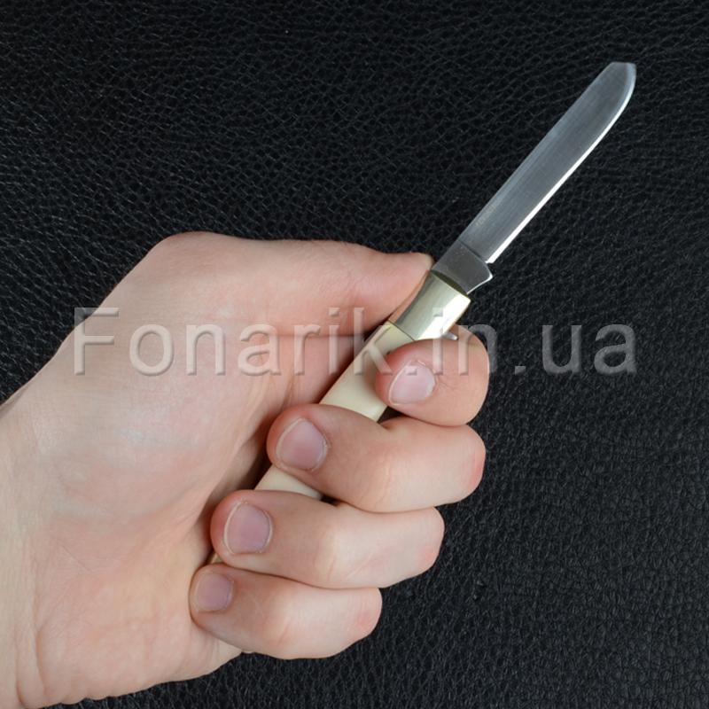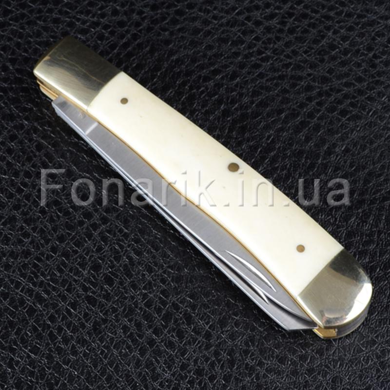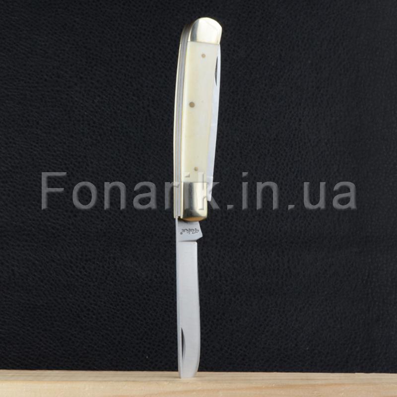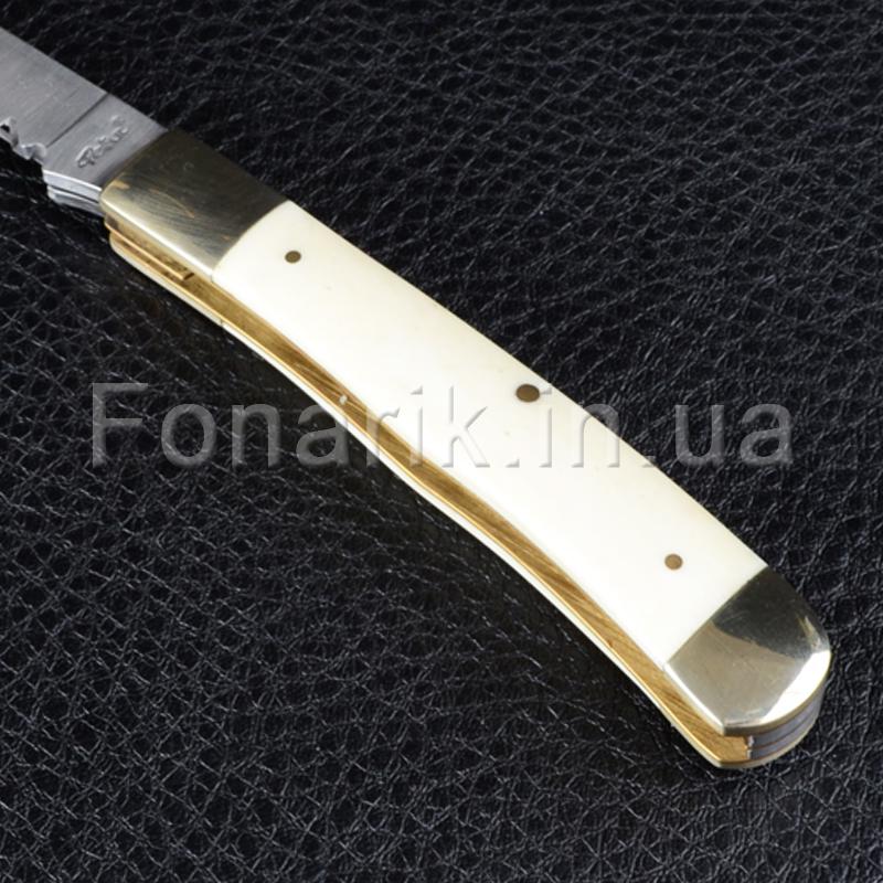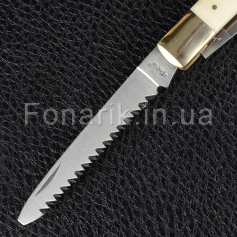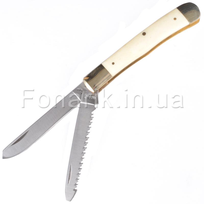 Компактный нож TEKUT Exploiter MK5009B, он оснащен двумя клинками (с обычной и серрейторной заточкой) которые изготовлены из стали 5Cr15Mov. Рукоять сделана из кости и латунными вставками. Отличный подарок ценителям элегантности и эксклюзива.