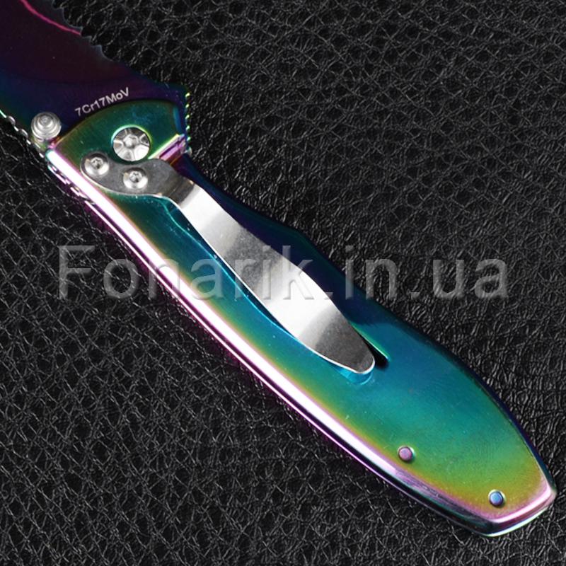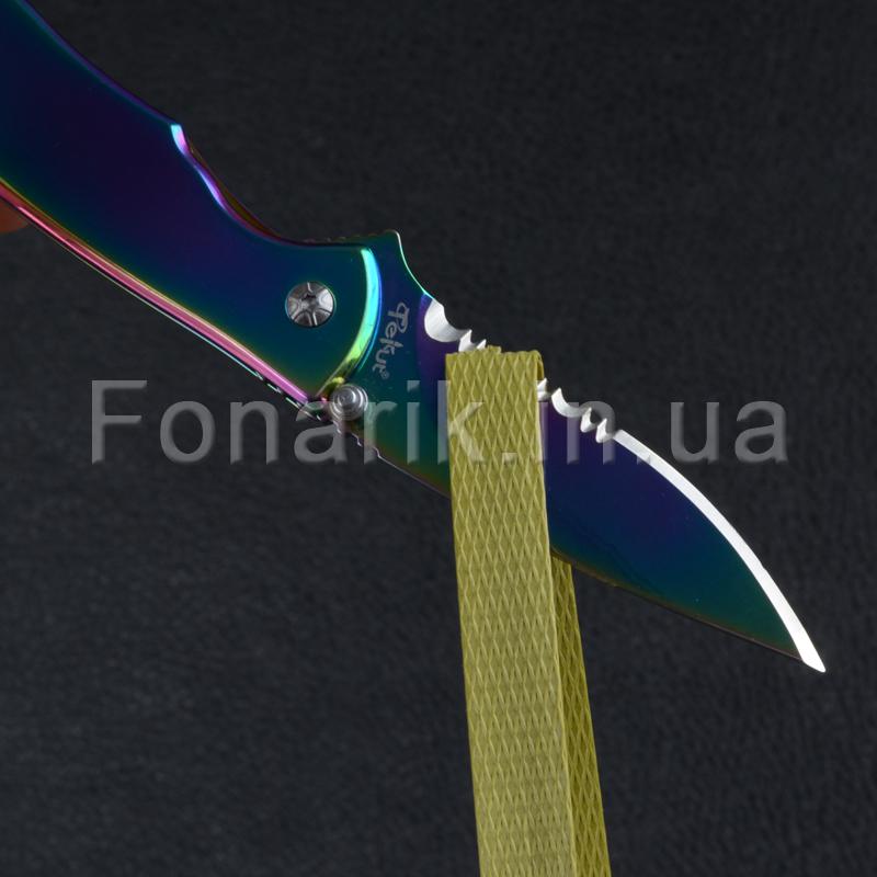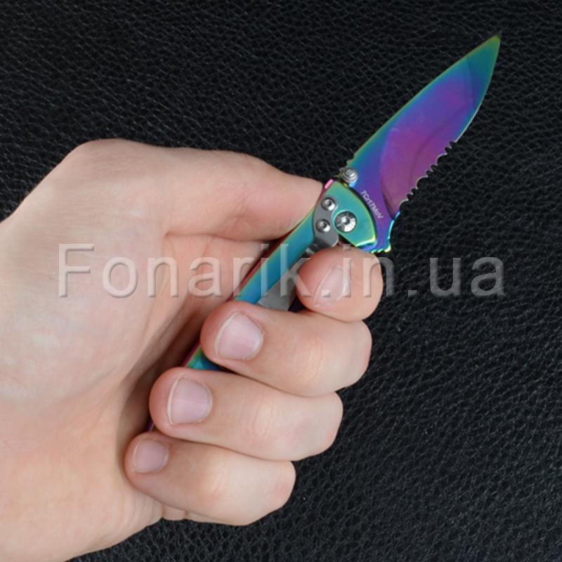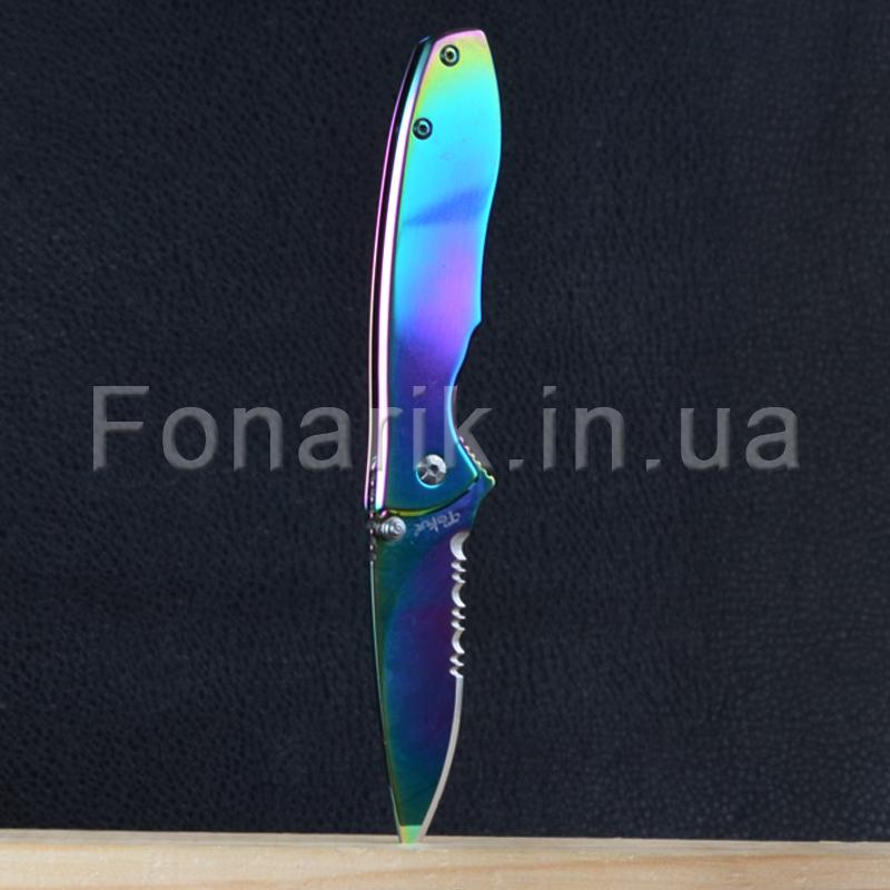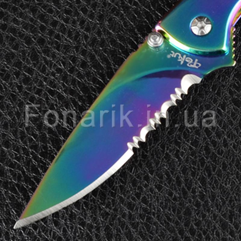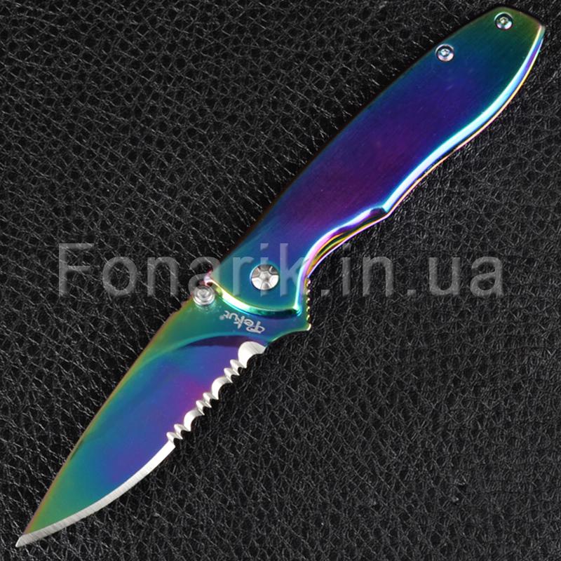 Стильный и оригинальный складной нож TEKUT Fairy LK5035A привлекает внимание своим цветом "Хамелеон". Полусеррейторный клинок изготовлен из стали 7Cr17MoV имеет твердость 55HRC. Рукоять сделана из нержавеющей стали. Клинок фиксирует замок Frame Lock. Так же на самом лезвии с двух сторон имеется шпенек для однорукого открывания, правой или левой рукой. На рукояти есть металлическая клипса. TEKUT Fairy LK5035A пригодится для любых бытовых задач, его можно взять с собой на природу, рыбалку или на охоту.