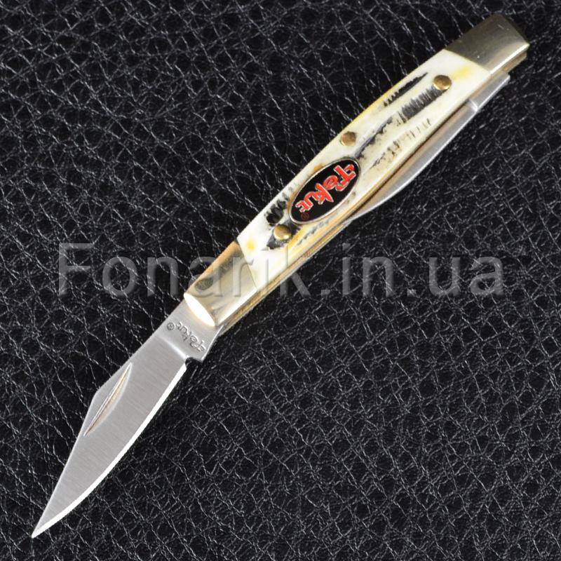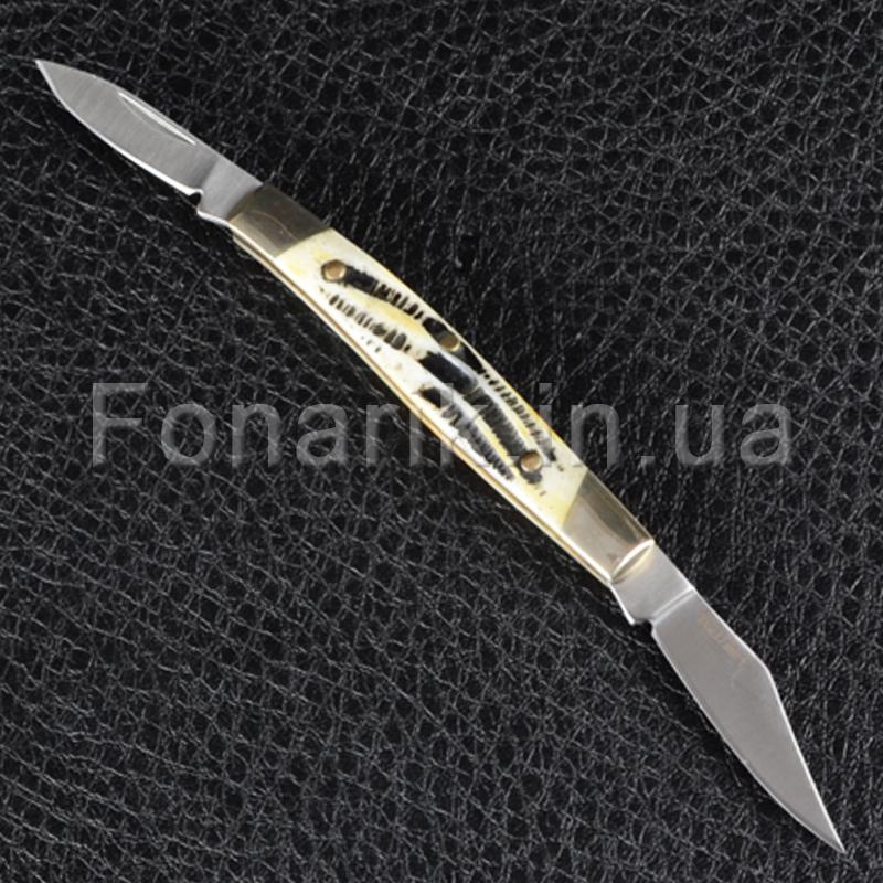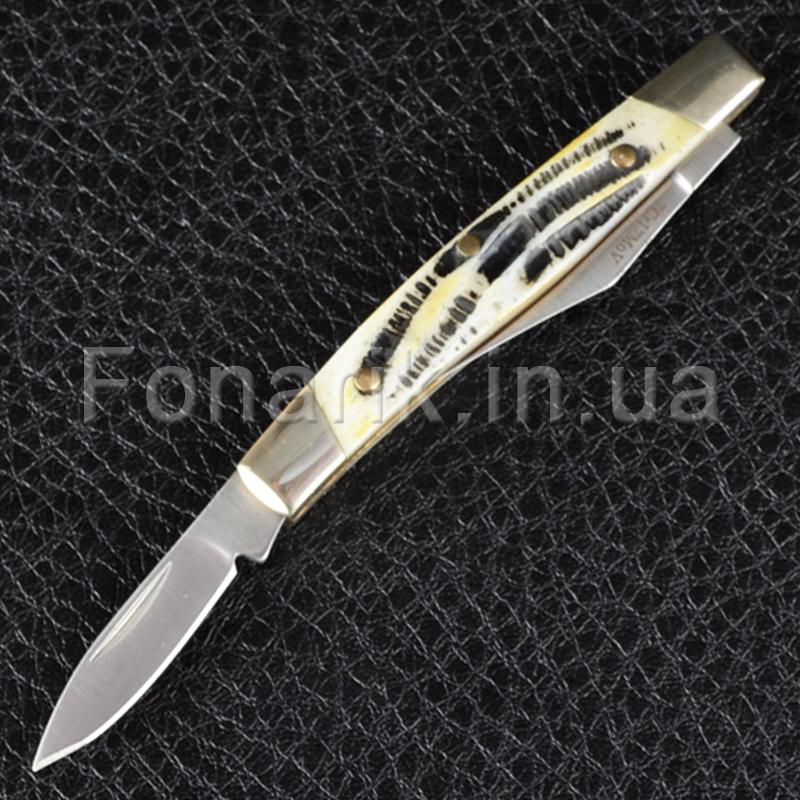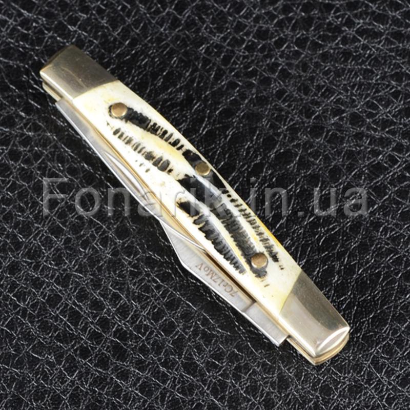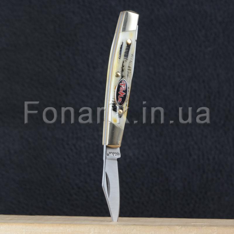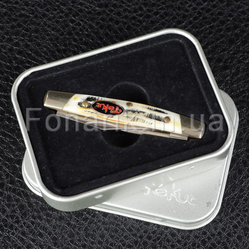 Складной нож TEKUT с двумя лезвиями, рукоятка кость (полная длина 13.6см, длина лезвия 7см)