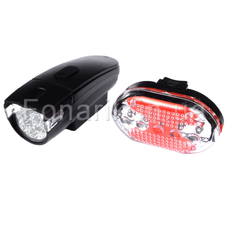 Велофара + задний фонарь для велосипеда KK890 ( 8LED/5LED, 3хAAA), черный